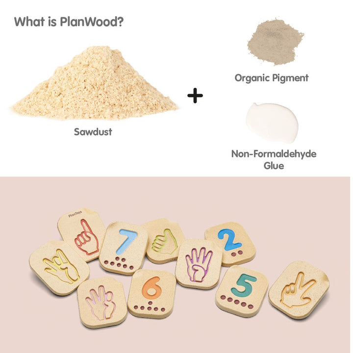 Add variety to your knowledge of numbers with this sign language number set! The 10-piece set features impressed numbers, counting dots, and American Sign Language illustrations that help children learn numbers in various ways.