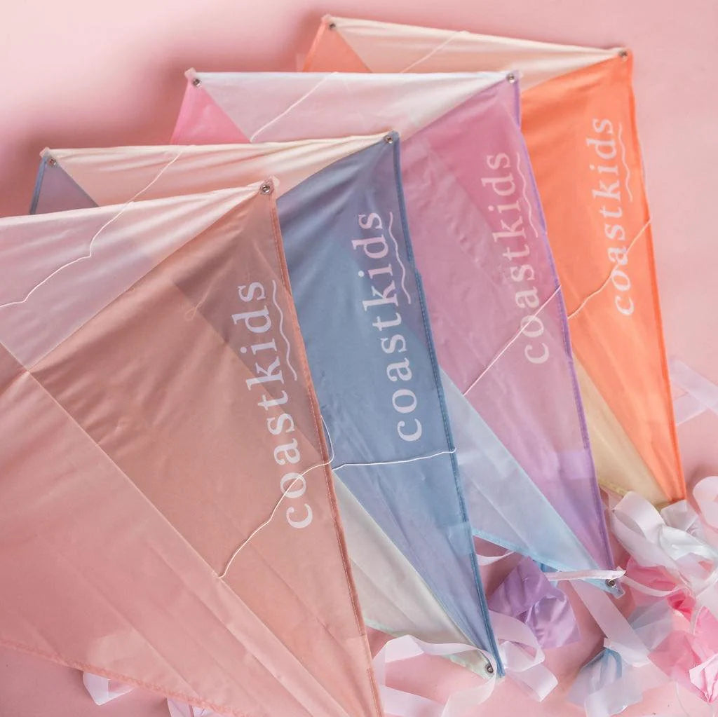 each kite comes with its own white fabric storage bag and the purple/pink variant has a bow tail.